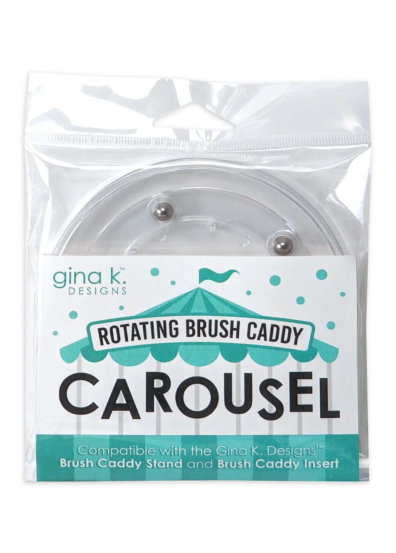 Attach this turntable to the bottom of your Gina K Designs Brush Caddy for easy and quick access to all your Gina K Designs Brushes. Attach to the bottom of your Brush Caddy using Terrific Tape or other strong hold tape.