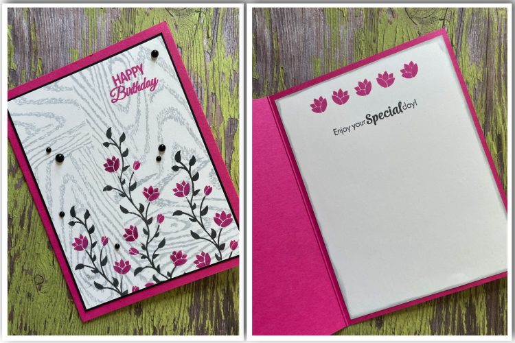 On the Inside is a stamp set by Debrah Warner. This set is made of premium clear photopolymer and measures 6" X 8". Made in the USA