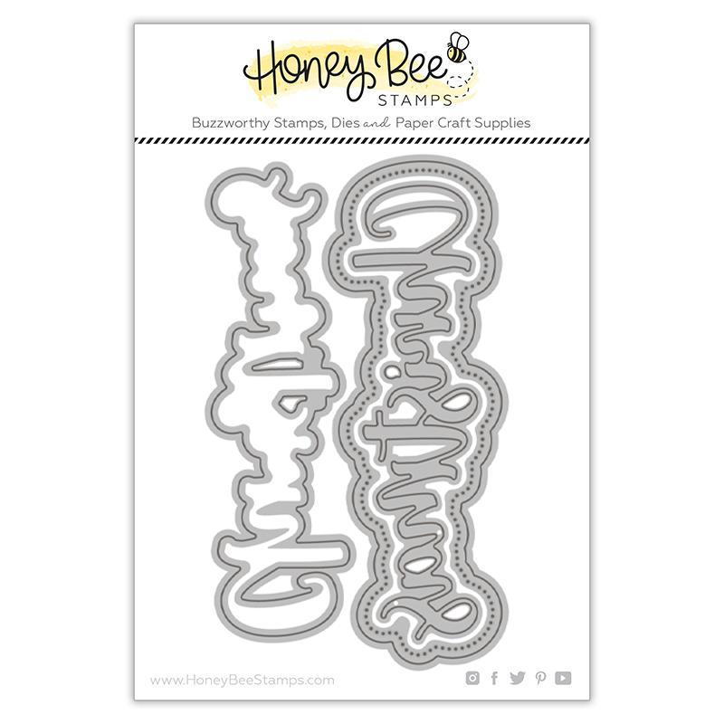 Package contains 3 steel craft dies. Dark grey outlines indicate the cut lines. Largest shadow also includes piercing details, shown as white dots. Light gray indicates individual dies. Layer these dies together for a dimensional look, or use the words alone for a more simple approach! Dies are pre-clipped!! Honey Cuts... our very own custom craft dies, made of high-quality finished 100% steel. Compatible with most die-cutting machines on the market today.