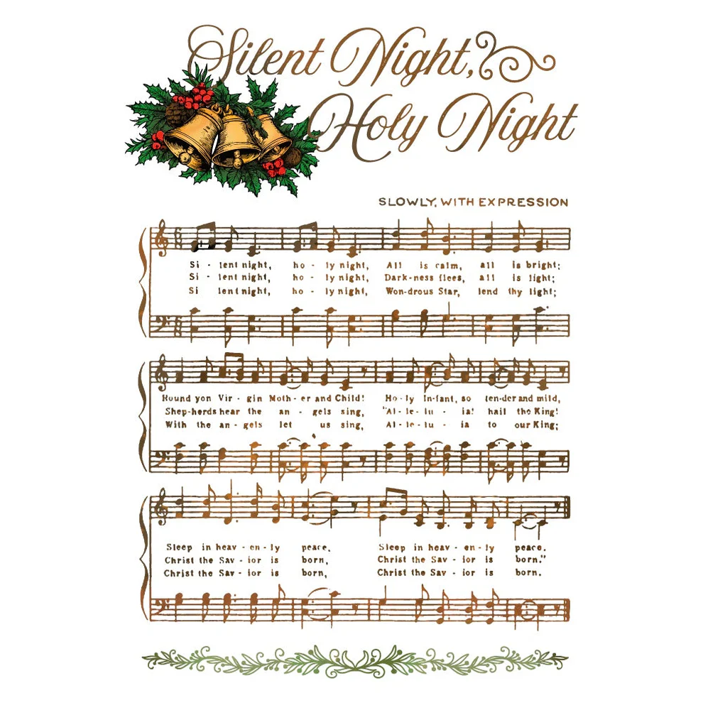 Craft the perfect holiday scene with this charming 4" x 6" rubber cling stamp featuring gorgeous vintage Silent Night sheet music. Made right here in the USA with quality craftsmanship, these cling stamps stick exactly where you need them and peel away cleanly for your next creative project. Whether you're designing festive cards, scrapbooking layouts, or decorating gift wrap, this versatile stamp brings nostalgic elegance to every creation. No mess, no fuss-just pure stamping joy! Dimensions - 3-3/4" X 5-1/8"