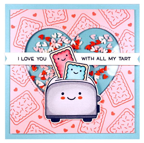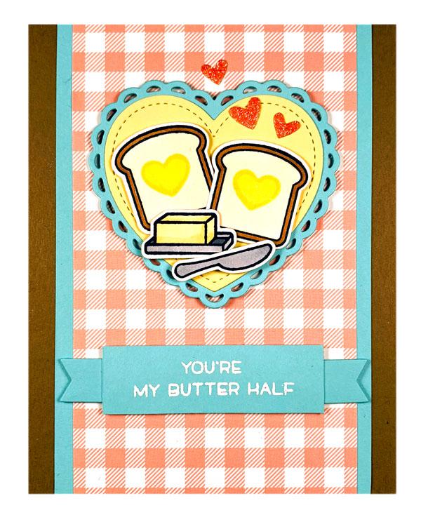 A toast to crafting! This cute set is perfect for Valentine's Day, friendship cards, anniversaries, or for anyone who really loves breakfast! Coordinating set ideas: This set coordinates with Let's Toast Lawn Cuts andLet's Toast Pull Tab Add-On to make an interactive card, with the toast (or pastry tart) popping out of the toaster! This set also looks great with a sentiment such as XOXOXO Line Border or Love Ya Line Border . approximate stamp sizes:toaster: 2 1/4" x 1 7/8"toast: 1" x 1"avocado: 7/8" x 1"pastry tart: 1" x 1 1/4"butter on dish: 1" x 1/2"heart: 1/2" x 1/2"