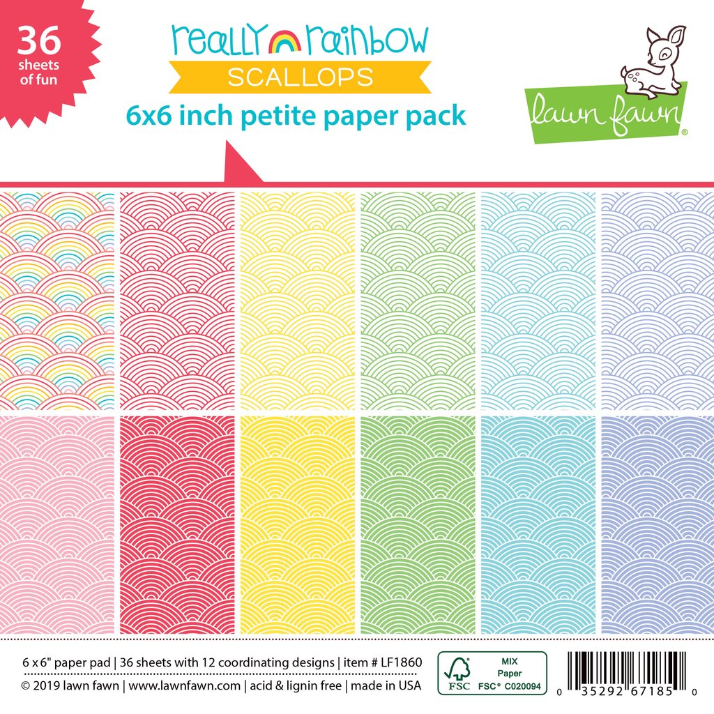 Give your cards and crafts a creative touch with this fun 6x6 pad! The Petite Paper Pack contains 36 sheets and features 12 coordinating patterns from the Really Rainbow Scallops collection. Really Rainbow Scallops is a collection of papers featuring a fun scalloped pattern. With papers featuring every color in the rainbow, this collection is sure to brighten up your cards and crafts!