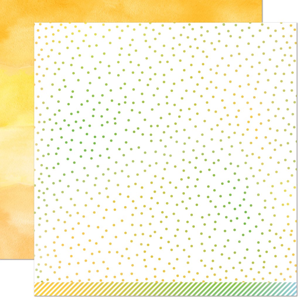 Citrine is a 12x12 inch patterned paper with a coordinating pattern on the reverse. This paper is part of Watercolor Wishes Rainbow, a collection of watercolored patterned papers. This collection is a great backdrop for your cards and scrapbook layouts. Made with care in the USA!