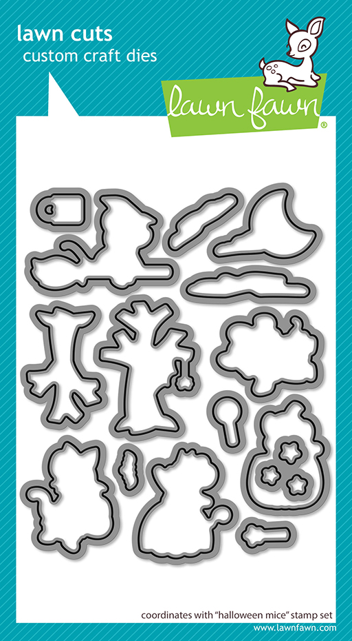Coordinating stamp set: Halloween Mice. This set has 15 pieces. Lawn Cuts custom craft dies are high-quality steel and are compatible with most die cutting machines!