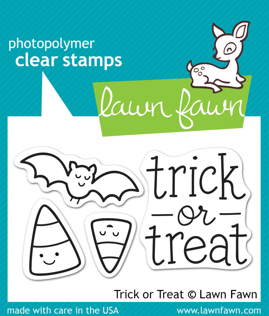 Approximate stamp sizes: [trick or treat] 1 1/4"W x 1 3/8"H1 1/2"W x 1/2"H[large candy corn] 5/8"W x 7/8"H[small candy corn] 1/2"W x 5/8"H