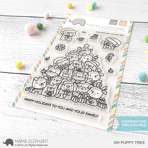 4x6 Photopolymer Stamp Set Includes: 9 Image Stamps, 2 Sentiment Stamps. Approximate measurements: Puppy Tree 3-3/4" x 3-7/8", Puppy with bone 1-1/8" x 1", Yappy Holidays... 3-1/4" x 1/8". Coordinating Creative Cuts (Sold Separately): Oh Puppy Tree Creative Cuts