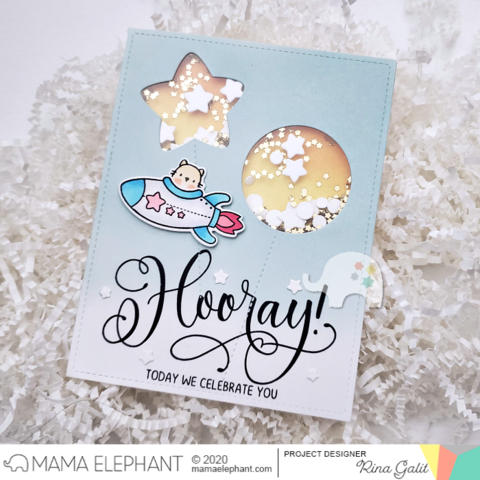 4x6 Photopolymer Stamp Set Includes: 15 Image Stamps, 2 Sentiment Stamps. Approximate measurements: Rocket 1-3/8" x 1-7/8", Space Dog 3/4" x 7/8", Best of Luck 1-7/8" x 1/2"