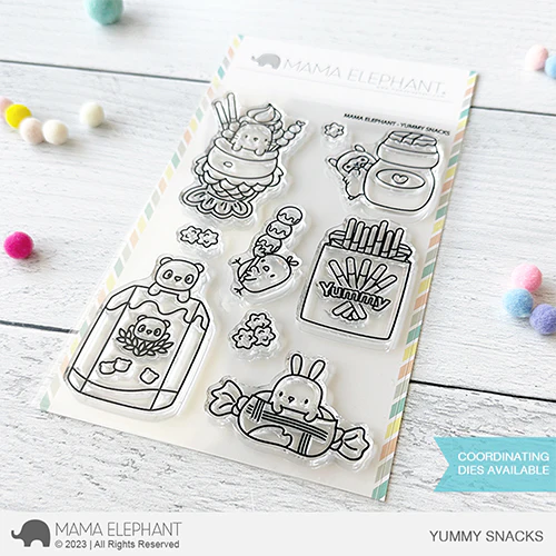 4x6 Photopolymer Stamp Set Includes: 9 Image Stamps. Approximate measurements: Taiyaki 1.5" x 2.6", Yummy Box 1.2" x 1.9", Bunny Candy 2" x 1.25". Coordinating Creative Cuts (Sold Separately): Yummy Snacks Creative Cuts