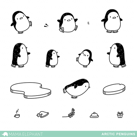 4x6 Photopolymer Stamp Set: Contains 17 Image Stamps. Approximate measurements: Big Penguin 1-1/4" x 1-1/8",Little Penguin 7/8" x 7/8",Big Ice Block 2-1/8" x 7/8"