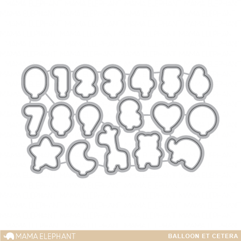 Balloon Et Cetera Creative Cuts coordinates with the BALLOON ET CETERA Stamp Set.Approximate measurements:Bear 3/4" x 1"