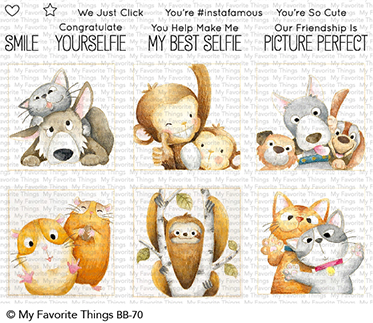 Expressing yourself with a silly selfie is a widely-embraced means of sharing your personality - why should we exclude our furry friends from the practice? A mix of dogs, cats, monkeys, guinea pigs, and even a sloth are all represented in this endearing stamp set from Birdie Brown. Pair with the Selfie Square Die-namics to frame the images or to create perfectly-sized die cuts that create a thin border around the outside line frame. You can also use the Polaroid Shaker Frame to crop the image a bit, concealing the fine border around each image. You'll immediately click with this adorable set - say "CHEESE"!