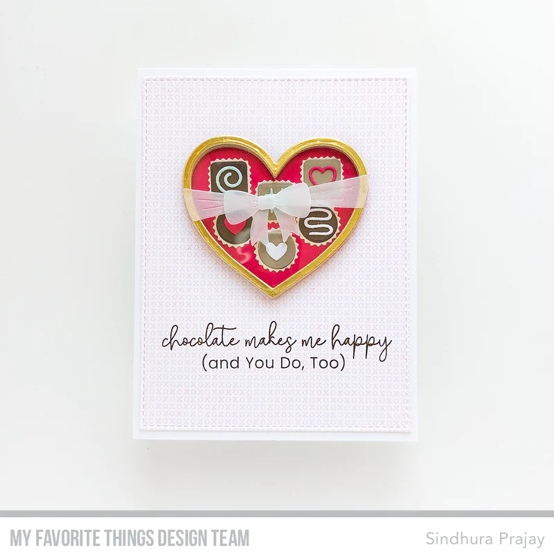 Whispered words of love delivered instead via snail mail or a note slipped inside a purse, lunchbox, or backpack are so special - especially when they're as sweet as those featured in this beautiful mix of sentiments. From significant others to BFFs to the children in your life, there's something for everyone on your list. These phrases are especially ideal for complementing the Box of Chocolates and Dessert on Display die sets. Our clear stamps are made in the USA and include the name of the set on the sticker for easy identification. January 2023 Release - 4" x 8" clear stamp set - (12) piece set. chocolate makes me happy (and You Do, Too) 3 3/8" x 5/8", I'll Always choose you 2 1/2" x 1/2", Thanks for Being You and being mine 2 3/8" x 3/4", Thank You, you sweet thing 2" x 3/4", Real Friends share cupcakes 3 3/8" x 1/2", Any Way You Frost It, you're my best friend 2 3/4" x 3/4", I Found Love when I found you 2 1/8" x 3/4", You Were born to be sweet 2 1/8" x 5/8", life is sweeter with You in It 1 7/8" x 5/8", I Love You a choco-lot 2 5/8" x 3/8", A Sweet Friendship Is good for the soul 2 1/2" x 3/4", Wishing You a sweet one 2 7/8" x 3/8".