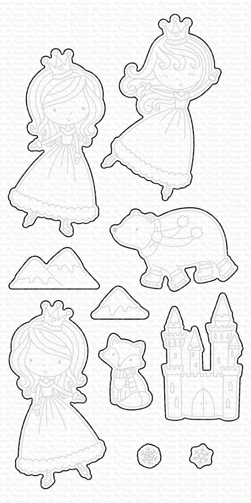 This die set coordinates with the Ice Princess and Friends stamp set for perfectly die-cut images. The dies are open inside to allow you to stamp then cut, or cut then stamp. This feature also allows for easier removal of the die cuts.