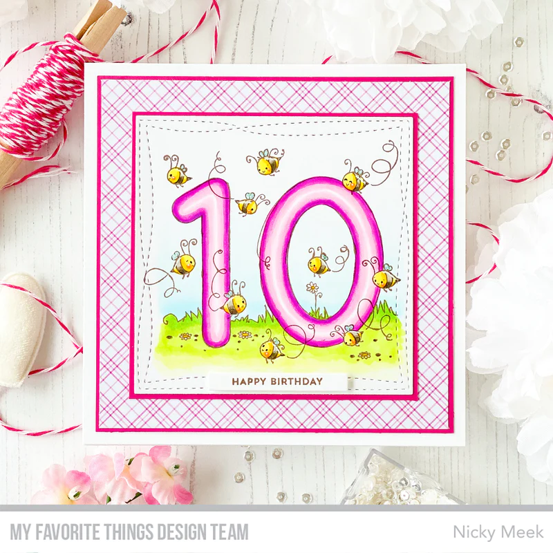 Ten...double digits...now they've hit the big time: two whole hands! There's a buzz in the air when this milestone birthday approaches which makes this final addition to the Number Fun line, a full-on bee party, the perfect finale to the immensely popular line. Have you collected them all so far? Complete your collection today! Our clear stamps are made in the USA and include the name of the set on the sticker for easy identification. January 2023 Release - 4" x 4" clear stamp set - (2) piece set. Sentiments: You've Hit Double Digits! Bee scene 3 5/8" x 3 1/4".