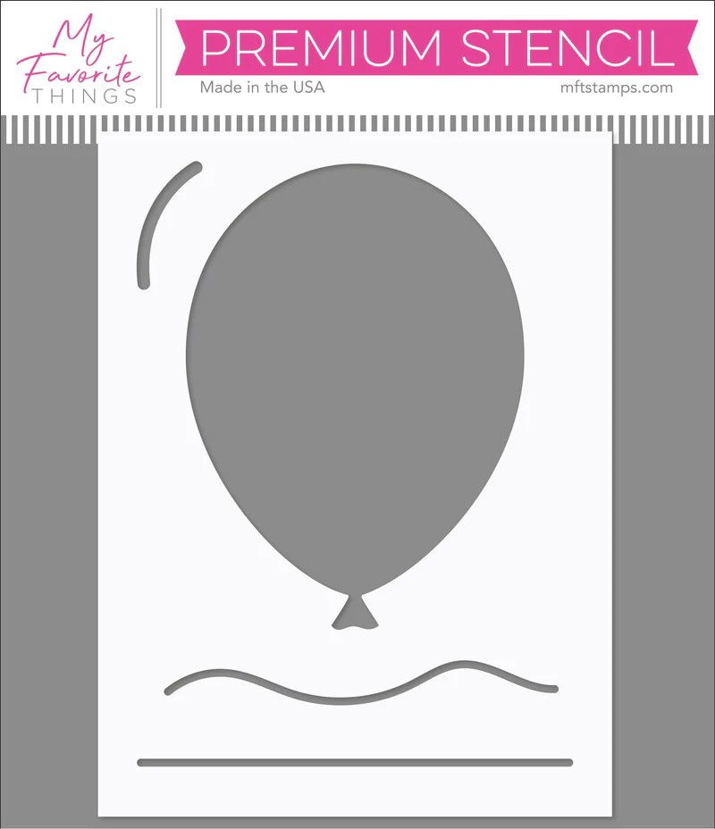 This stencil features a generously sized balloon that is perfect for creating a highlighted area to showcase an image or sentiment on your card fronts. Add dimension and mimic the shine of an inflated balloon with the included highlight element and finish your look off with one of two balloon string options. My Favorite Things is thrilled to bring you our line of premium stencils. These exclusive, American-made stencils will be an essential ingredient in your paper crafting and mixed media projects from this moment forward. With our stencils you can paint, spray, mist, spritz, airbrush, sponge, doodle, mask, and more on a variety of surfaces including card stock, canvas, cork, chipboard, acetate, and fabric. May 2024 Release - 4 1/2" x 6" stencil