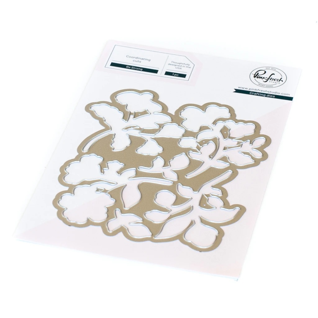 1 pc die set to coordinate with the Be Strong stamp set and Be Strong layering stencil set. This die cuts out each floral piece in one pass through a diecut machine.