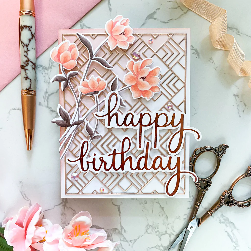 4 x 6 photopolymer clear stamp set designed by Inna Moreva. Made to coordinate with the Go For It die set & Go For It layering stencil set. There is also a matching Go For It hot foil plate. Available for purchase separately. With delicate stems and dainty petals, our latest floral set will give a soft and modern feel to all your paper crafting projects! Stamp the delicate blooms, then easily ink blend colors to it with the coordinating stencils in all your favorite shades of ink. You can also color the outline stamped image in your favorite mediums, including watercolor, markers and colored pencils. By offering different options within each design, you get the utmost of versatility when using our products! The following sentiments are included in the stamp set: -So happy for you -You can grow through this -You are more than capable -Thank you for being an amazing friend -Go for it!