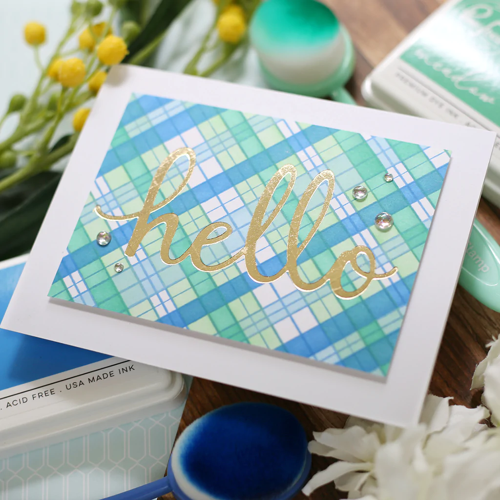 1 piece hot foil plate designed by Inna Moreva. Designed to coordinate with the Sentiment Suite: Hello die set and complement the Simply Sentiments: Hello stamp set. Create a stunning, letterpress feel to all your projects with a Pinkfresh feel using our new hot foil plates! Designed to work in any standard hot foil system, be sure to follow the instructions in your manual for a standard hot foil plate. Foil the hello sentiment in all the different color options, or use the plate to dry emboss an impression to cardstock. Approximate measurement: 1.75" x 4.25"