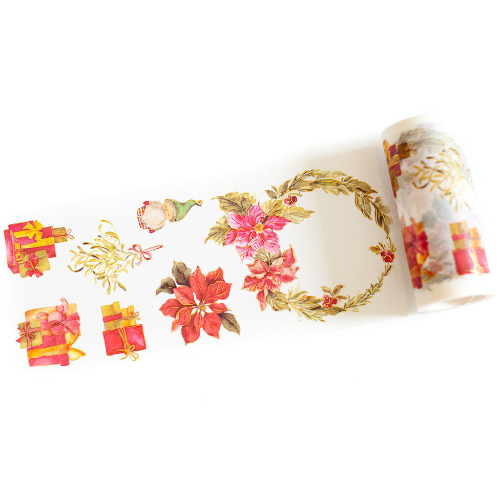 1 piece washi tape designed by Manushree Mishra. Made to coordinate with the Holiday Elements stamp set, Holiday Elements layering stencils and Holiday Elements die. Effortlessly add whimsical watercolor holiday elements to all your projects with our innovative washi tape, stamp, stencil & die combo. Holiday Elements combines a festive color palette of reds & greens, with added pinks & yellows here and there. We've included gold foiling to really give it a festive feel! Cut each image out with the coordinating die and it is ready to attach to your card, layout, notebook spread, mini album & more! Mix and match with the coordinating stamp set or layering stencils for added versatility. Roll size: 4 inches wide x 10 meters long