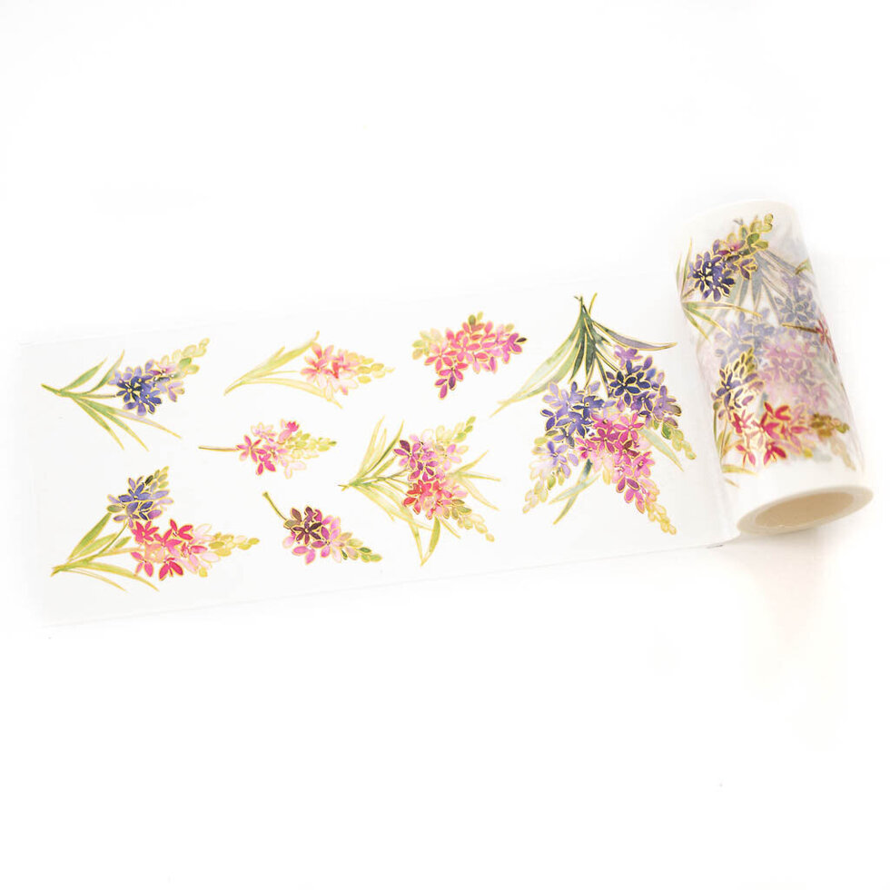 1 piece washi tape designed by Valentine Leclerc. Made to coordinate with the Tuberose stamp set, Tuberose layering stencils and Tuberose die. Effortlessly add beautiful watercolor Tuberose bunches to all your projects with our innovative washi tape, stamp, stencil & die combo. Tuberose combines a gorgeous color palette of pinks, mulberry and purples with fresh spring greens. The images are outlined in gold foiling to really make the washi tape shine! Cut each image out with the coordinating die and it is ready to attach to your card, layout, notebook spread, mini album & more! Mix and match with the coordinating stamp set or layering stencils for added versatility. Roll size: 4 inches wide x 10 meters long