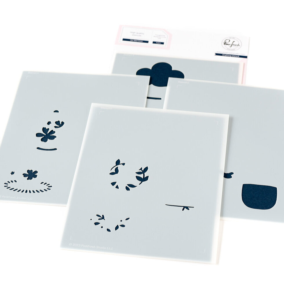 4 piece stencil set made to coordinate with the Get Well Soon stamp set and Get Well Soon die set. There is a separate stencil for each layer, with guidelines on each stencil for perfect alignment when using alone. When using the stencils with the stamped image you will forego the alignment guides, and instead align each layer to the stamped images. Use them without the stamped image for a softer look. Use the coordinating stamp to add more detail to the image by stamping with detail black or heat embossing in your favorite powder for added shine. Stencil design measures approximately 4.25" x 5.5"