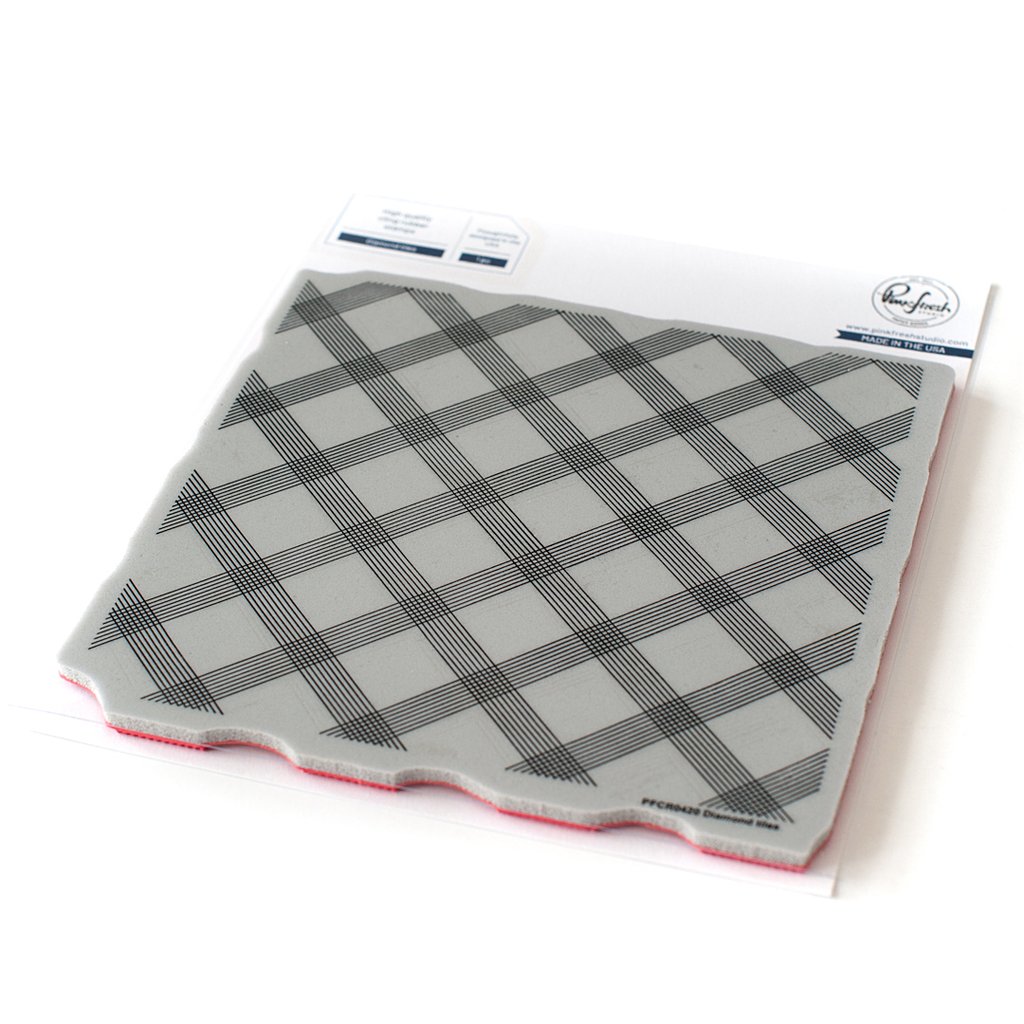Modern & geometric, we think you will reach for the Diamond Tiles background time & time again! Add subtle color & details to any card background with the intricate lines, or be a bit bolder by stamping it in crisp Detail Black ink. The simple pattern of this background stamp is perfect for mixing with all our lovely floral stamps, and using with our selection of Essentials diecut sets. Get a perfect stamp impression every time with our high quality background stamps. They are made from deeply etched red rubber mounted to cling foam and made in the USA. They measure approximately 6" x 6".