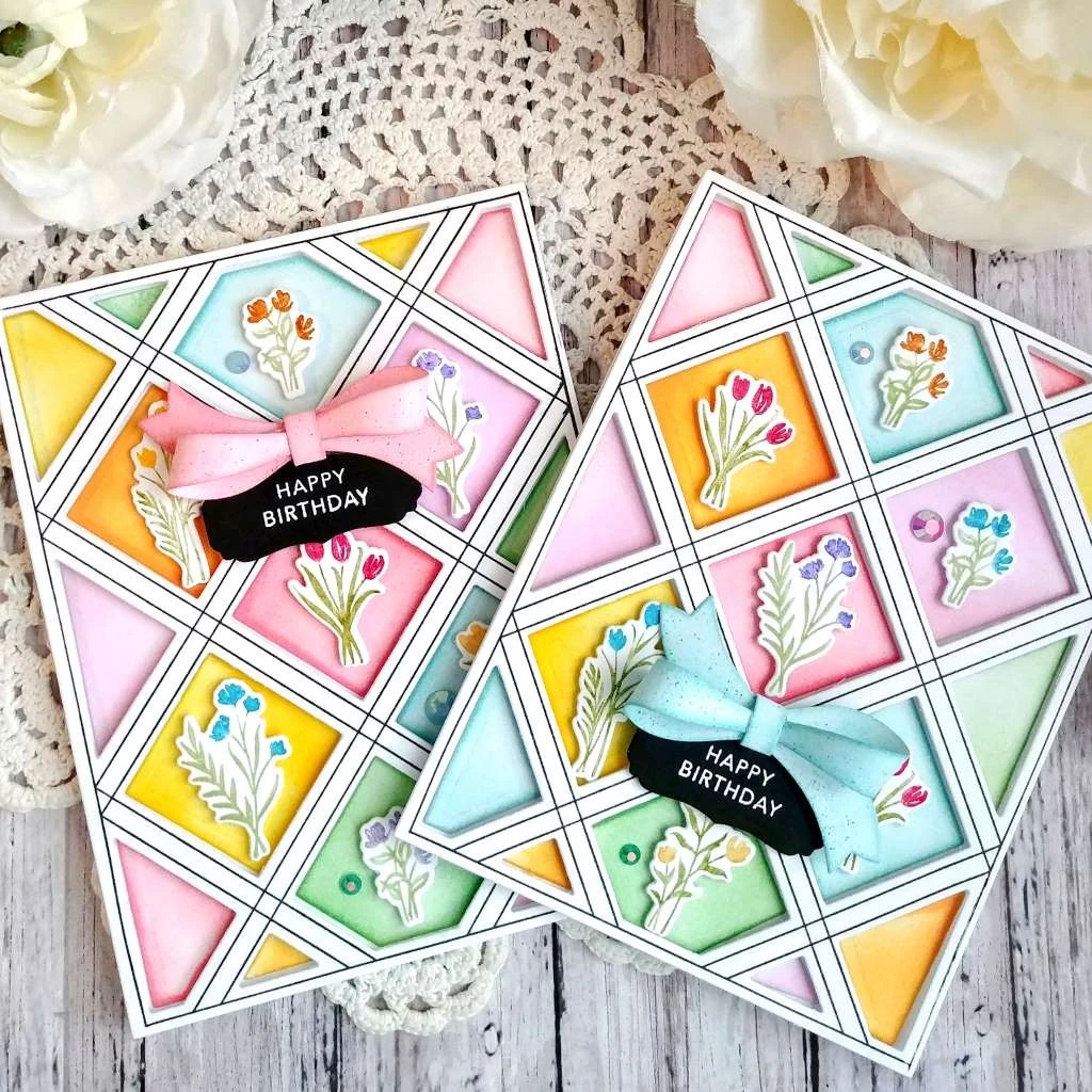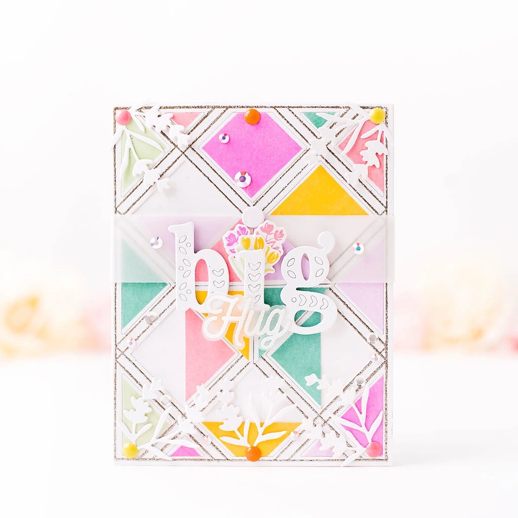 5 piece die set designed by Inna Moreva to coordinate with the Pop Out: Diamonds cling stamp. These dies cut around the silhouetted floral bunches included in the Pop Out Background stamp.