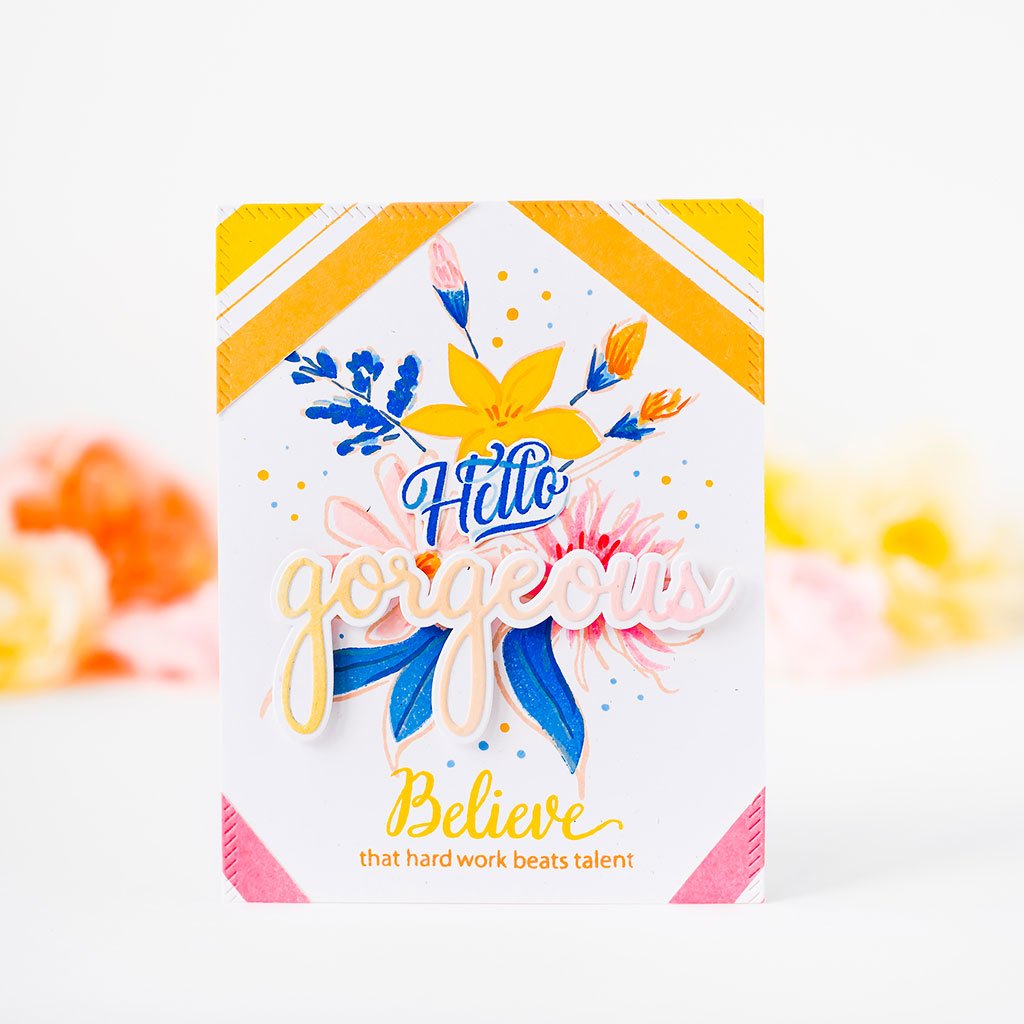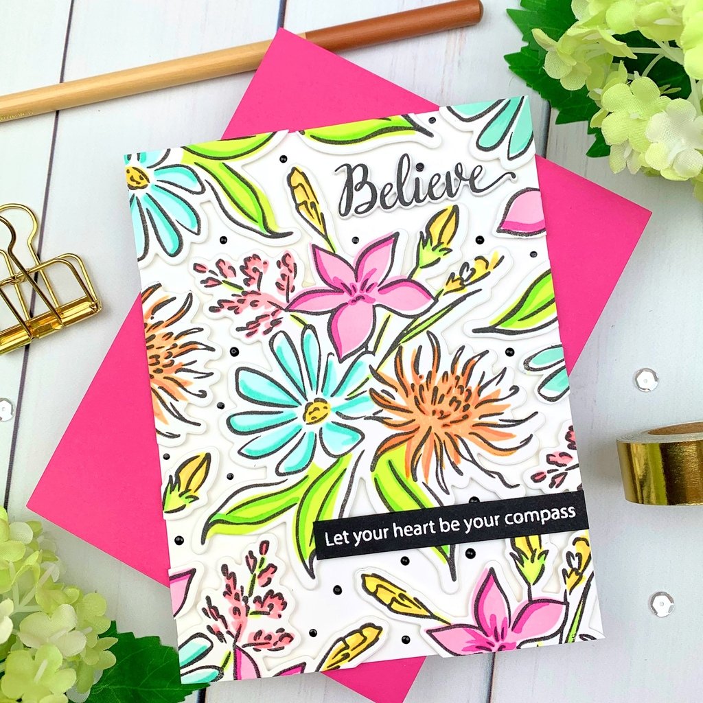 6 x 8 photopolymer clear stamp set designed by Inna Moreva. Made to coordinate with the Believe in Yourself die set. Available for purchase separately. Add a whimsical spray of flowers to all your papercrafting projects with this beautiful floral stamp set! Stamp or heat emboss just the outline floral image, then add color with your favorite mediums including watercolor, markers, colored pencils & more. The outline image is also perfect for the no-line coloring technique. If coloring isn't your favorite, you can use the coordinating stamp layers and our 48 shades of premium dye ink to add color. The possibilities are endless with this versatile floral stamp set!