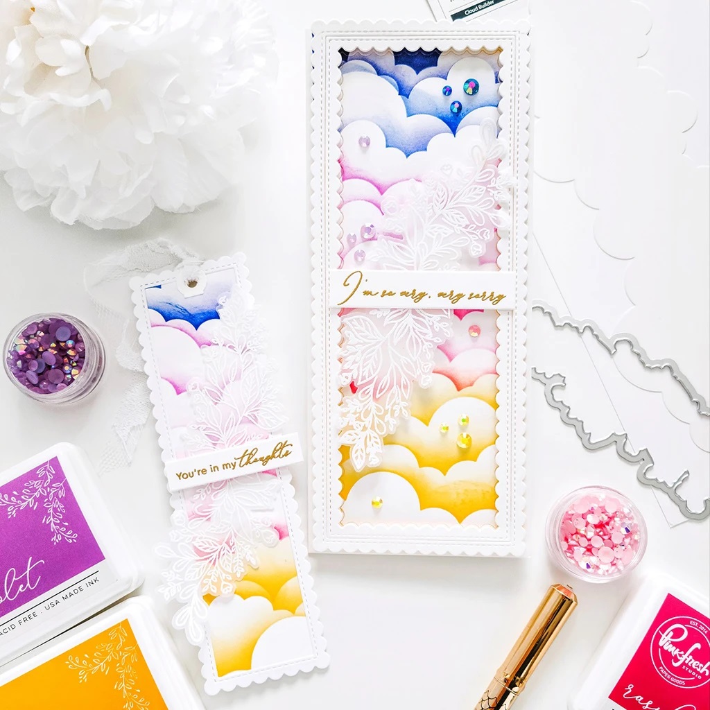 1 piece stencil designed by Inna Moreva. Create a dreamy landscape with our slimline clouds stencil. With two different cloud designs on each side, you can add different shapes of clouds to all of your card designs. While sized for slimline, this stencil can be used on all card sizes, including A2 and A7. The color combinations are endless when used with our 48 shades of premium dye inks. Our high quality stencils were designed as a modern basic to make card designs easy & fun! Approximate Measurements: 3 5/8" x 8 5/8"