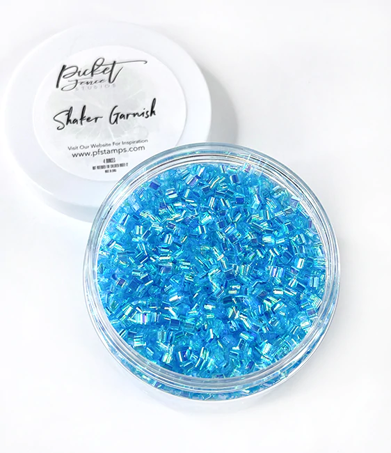 Shaker Garnish is the newest addition to Picker Fence Studios embellishment line. These small, elongated, round, plastic bits are hollow and very thin allowing a lighter weight and lower profile for your shaker cards. They are the perfect addition to your already existing Sequin Mix or Sequins Plus Mixes. Shaker Garnish colors are either iridescent or metallic in color. Grab a jar today for adding the perfect touch to your creations! 4 oz.