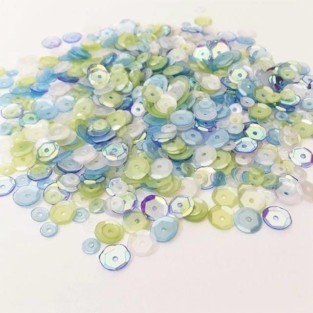 Add a touch of glitz and glam to your craft projects with this beautiful limited edition batch of sequins in 4mm and 6mm sizes. Included in this mix are the following colors: Marshmallow, Cornflower, Lime Sorbet sequins and iridescent 6mm Bermuda Blue sequins. These are the perfect embellishment for your cards, scrapbook pages, gift wrapping or paper crafts. Each pack contains 2 teaspoons (approximately 400) sequins.