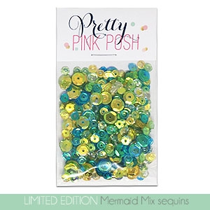 Add a touch of glitz and glam to your craft projects with this beautiful limited edition batch of sequins in 4mm and 6mm sizes. Included in this mix are the following colors: Sunshine Glow, Peridot Mist, Ocean Spray and 4mm Clear Droplets! These are the perfect embellishment for your cards, scrapbook pages, gift wrapping or paper crafts. Each pack contains 2 teaspoons.