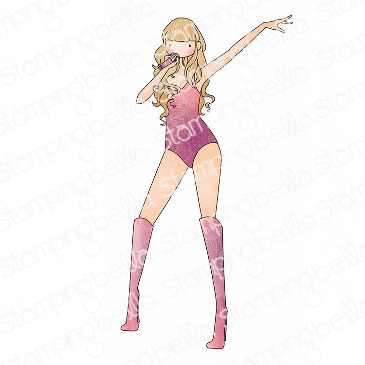 The Uptown Girl Loves to Sing rubber stamp captures the energy and passion of a performer in the spotlight. With long, wavy hair and a stylish bodysuit, she holds a microphone confidently, her extended arm adding to the dynamic stage presence. Her knee-high boots complete the look, making her the perfect stamp for music lovers and creative projects celebrating self-expression. Ideal for card-making, scrapbooking, and mixed-media designs, this stamp is great for anyone who loves the thrill of performing. Whether crafting a tribute to an iconic artist or embracing the joy of music, this stamp brings star power to any creation. Approx size 2.2" x 4.3"