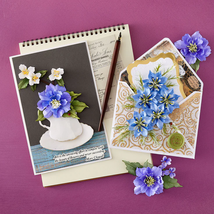 The Poet's Garden Die Bundle includes S3-559 Love-in-a-Mist, S3-569 Wild Violet and Ladybugs, and S5-712 Clematis Poet sets. The offering of these wonderful flowers inspired designer, Susan Tierney-Cockburn, to cultivate this lovely The Poet's Garden Collection. Which set inspires you to create with first?