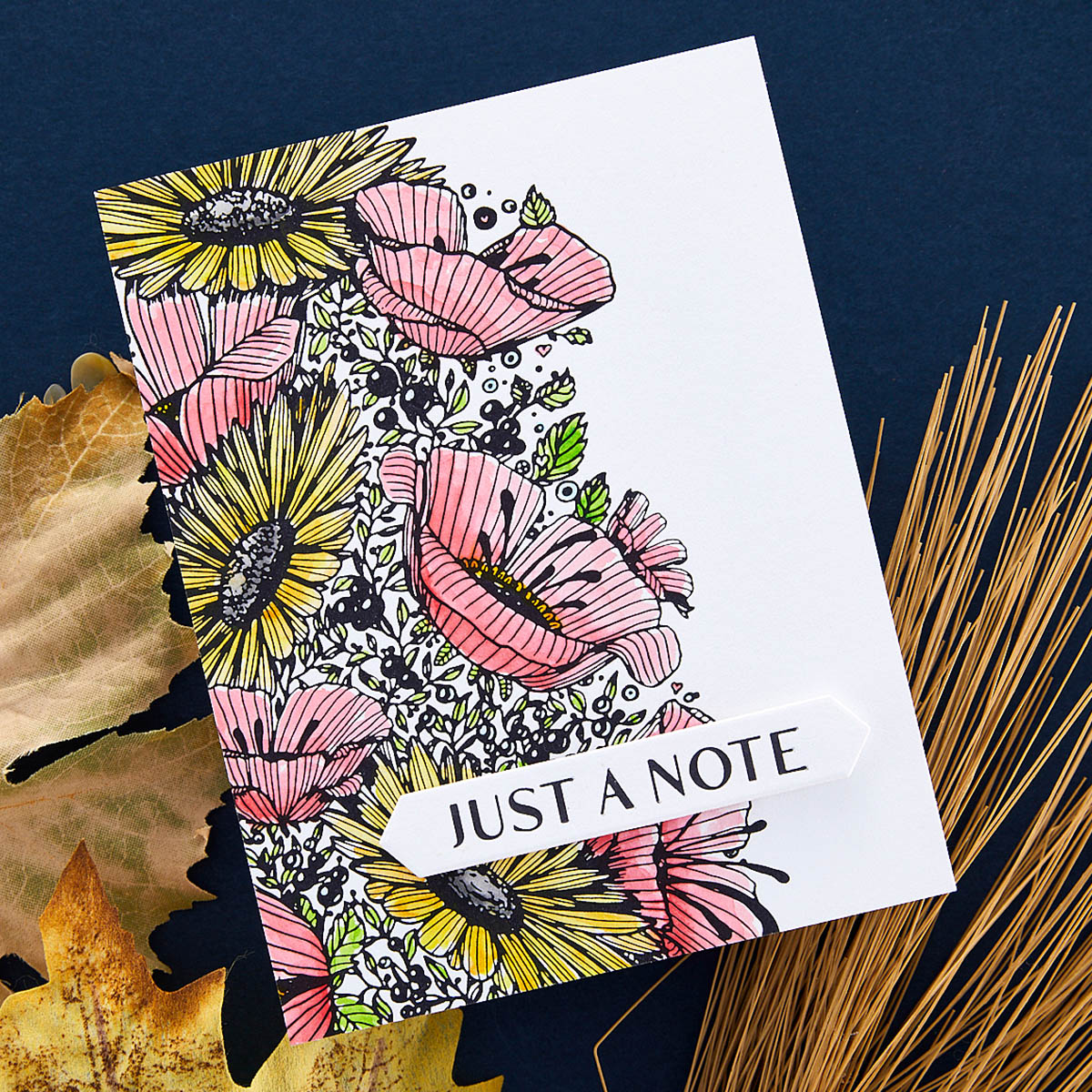 Sunflower Border Press Plate is from the Sentiments for All Seasons Collection. If you are a fan of sunflowers, this press plate is for you! See the intricate design of the flowers - just stunning. Also included is a Just a Note sentiment to finish this set of two press plates. Ink the plates with the BetterPress Ink to be pressed against the BetterPress Cotton Card Panel and Sheets for a crisp letterpress design.