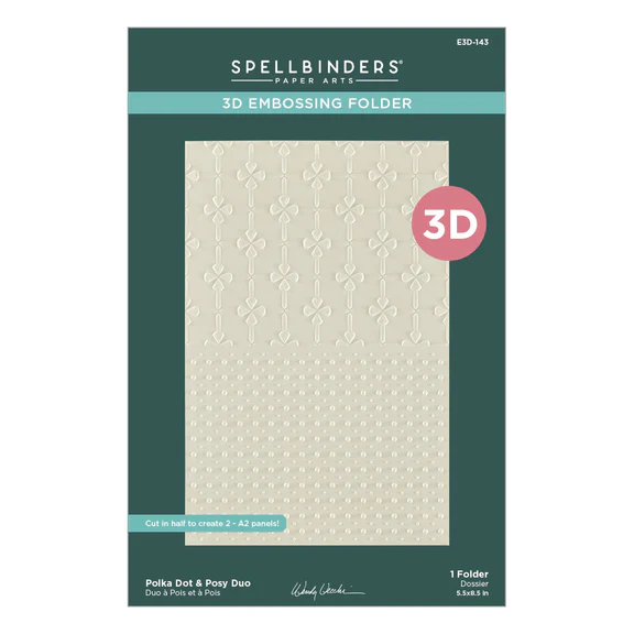 Polka Dot & Posy Duo 3D Embossing Folder is a 5.50 x 8.50 in. embossing folder unique with two different designs in one! One half is posey florals on a grid background and the other is a polka dot motif of small and large dots. Cut your embossed panel in half to create two A2-sized (4.25 x 5.5 in.) card fronts or leave it as is! So clever!