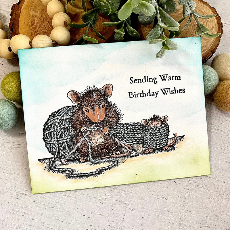 Knit One Cling Rubber Stamp Set is from the House-Mouse Designs Everyday Collection with a set of four stamps. Amanda knits as fast as she can while Monica wraps herself on what's been knitted. So cute! There are three warm and cozy sentiments included in the set. Designed to be used with an acrylic block.
