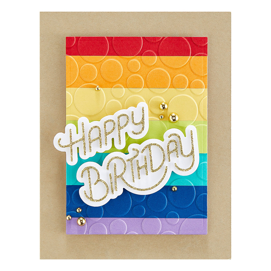 This Stylized Happy Birthday Etched Dies is from the Birthday Celebrations Collection. A bold Happy Birthday sentiment in a contemporary narrow font and its outline to stand out on a card! This set of four thin metal cutting dies are a must have in the collection. Commemorate a birthday or any special day with this Birthday Celebrations Collection. It includes everything from cakes, birthday sentiments and other designs to express good wishes on any project! Many items to mix and match including cutting dies, stencils, stamps, hot foil plates, embellishments, and even patterned papers. Approximate Size: Happy Outline: 2.24 x 0.97 in./5.70 x 2.50 cm, Happy: 2.04 x 0.77 in./5.20 x 1.90 cm, Birthday Outline: 2.93 x 1.20 in./7.40 x 3.00 cm, Birthday: 2.73 x 1.00 in./6.90 x 2.50 cm.