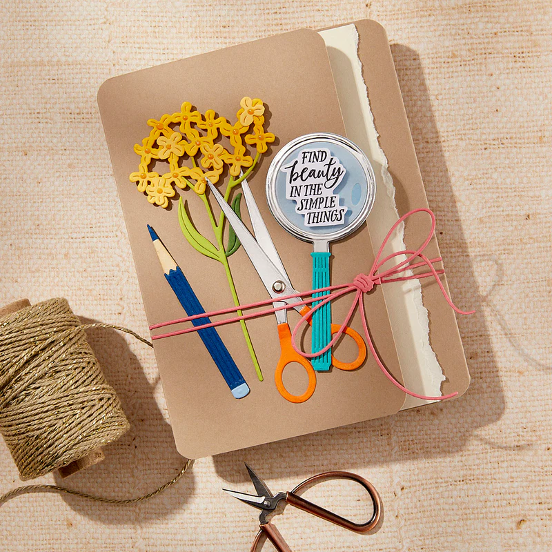 Field Notes Twine Etched Dies are part of the Field Notes Collection. Create a 5-inch wide booklet and use this set of thin metal cutting die to give it a finishing touch to its front. Adhere the twine wrap with its double loop bow around a booklet, card front or even a tag...many design ideas!