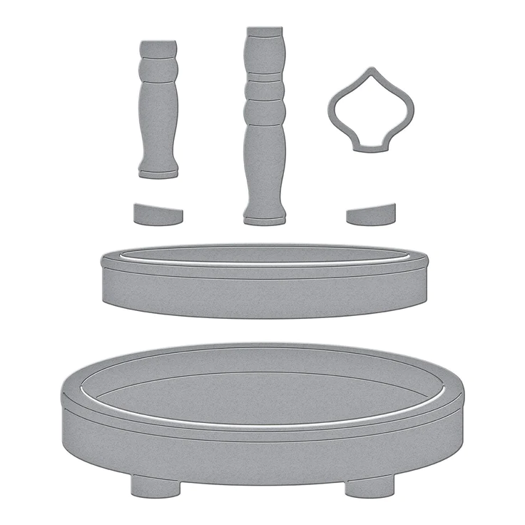 These Tiered Tray Etched Dies are from the Becky's Tiered Tray Collection by Becky Roberts. When assembled, this set of five thin metal cutting dies can create a tiered tray. It is a perfect foundation for the accessory pieces from S5-547 Tiered Tray Decor Etched Dies to be added. Bring this trendy home decor piece into paper crafting with Becky's Tiered Tray by Becky Roberts. Mix and match within this collection to personalize fun creations for yourself or for your friends! Approximate Size: Tray A: 3.70 x 1.43 in./9.39 x 3.64 cm, Tray B: 3.00 x 0.70 in./7.63 x 1.78 cm, Post A: 0.39 x 1.82 in./1.00 x 4.64 cm, Post B: 0.37 x 1.27 in./0.93 x 3.23 cm, Finial: 0.79 x 0.79 in./2.02x2.02 cm, Tray Bases (2 pcs): 0.45 x 0.21 in./1.15 x 0.54 cm.