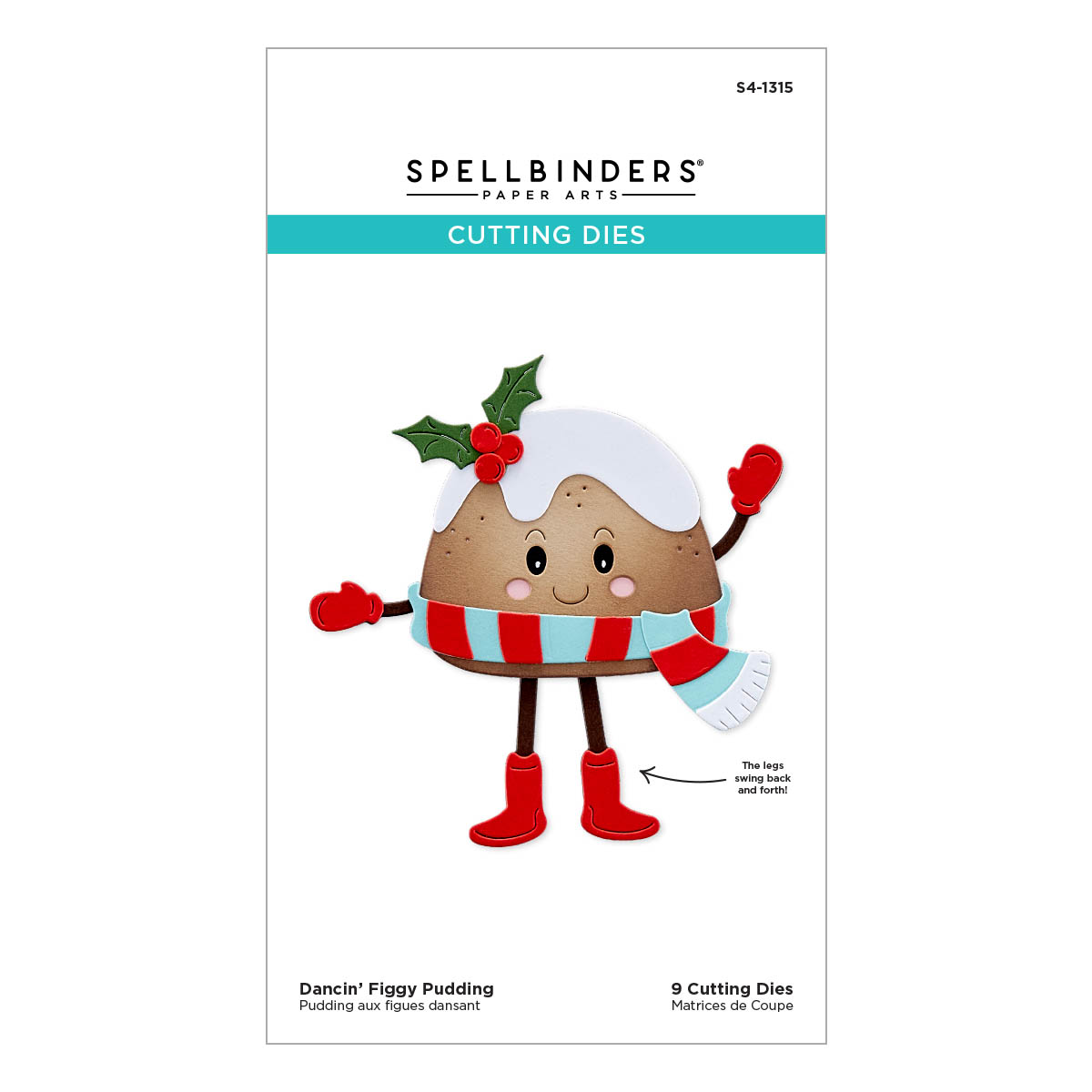Dancin' Figgy Pudding Etched Dies is from the Dancin' Christmas Collection and includes a set of nine thin metal cutting dies to assemble a whimsical Christmas cake. Make it come to life with its moving legs! The assembled Figgy Pudding measures 3.75 x 3.75 in./9.53 x 9.53 cm.