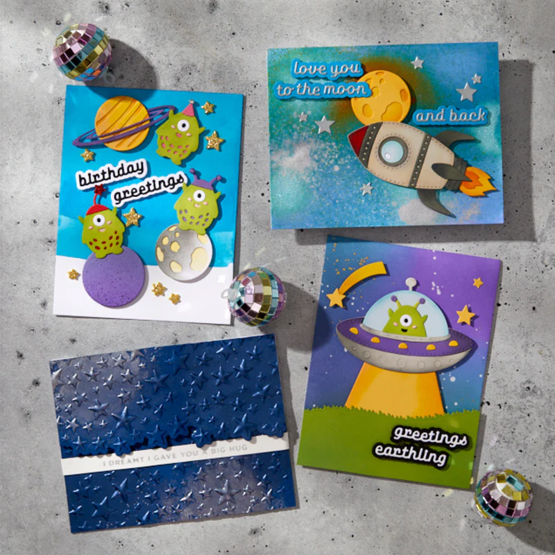 Spellbinders - Space Greetings Etched Dies from the Simon's Space Adventure Collection by Simon Hurley
