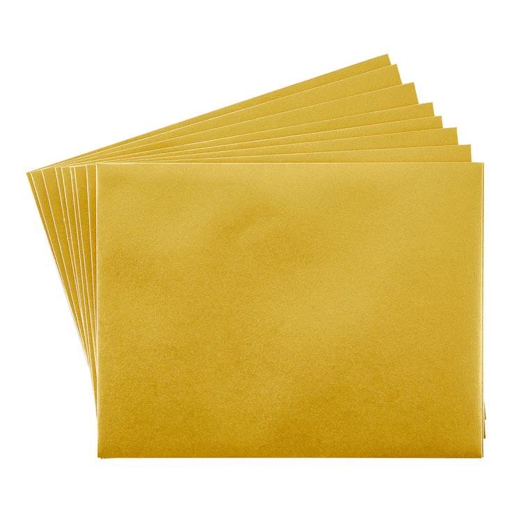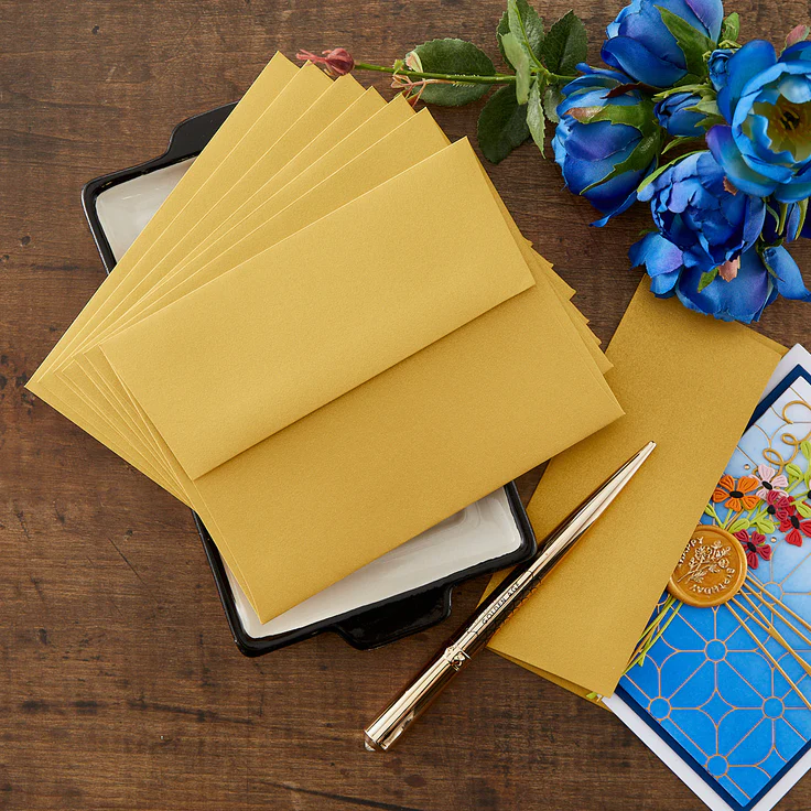 A2 Brushed Gold Envelopes is made from a beautiful pearlized gold cardstock. The pack contains 10 square flap envelopes and each measure 4.375 x 5.75 in./11.10 x 14.60 cm which is a perfect fit to house a standard A2-size card.