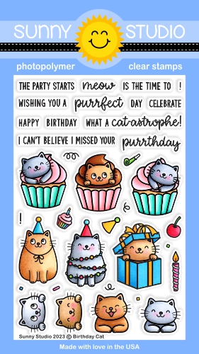 Sunny Studio - Birthday Cat 4x6 Clear Stamps
