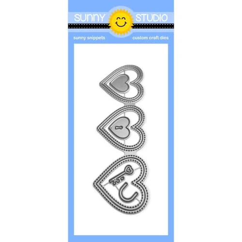 These 5-piece Window Trio Heart Landscape Dies create a trio of stitched heart windows, three stitched heart cutouts, a heart locket, and an old-fashioned key perfect for all your Valentine cardmaking and paper crafting projects. The overall die measures 5-1/8"w x 1-1/2"h with heart openings 1-7/16"w x 1-3/8"h. The assembled heart lock measures 3/4"w x 7/8"h. Sunny Snippets are low-profile custom-cutting dies made from high-quality steel and are compatible with most die-cutting machines. Check out our coordinating Window Trio dies for additional design possibilities.