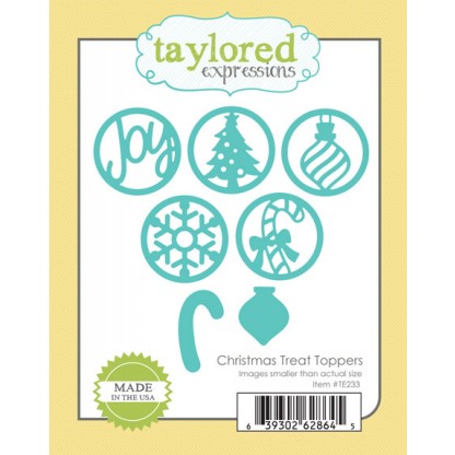 the round dies measure 1 3/4" in diameter, the ornament measures 1" wide by 1 3/4" tall, the candy cane measures 7/8" wide by 1 3/4" tall