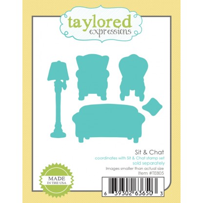 the largest die (sofa) measures 2 7/16" by 1 1/4"; the tallest die (lamp) measures 2 9/16" by 3/4"