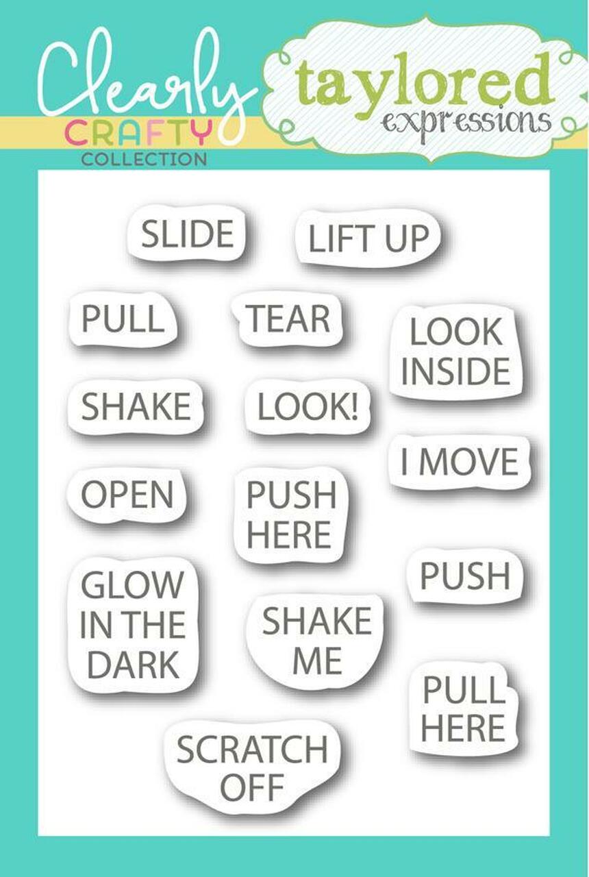 If you love making cards with interactive elements, you'll definitely want to purchase the I'm Interactive clear stamp set! This set includes 15 stamps with clear directions - so your card recipients will know exactly what to do: