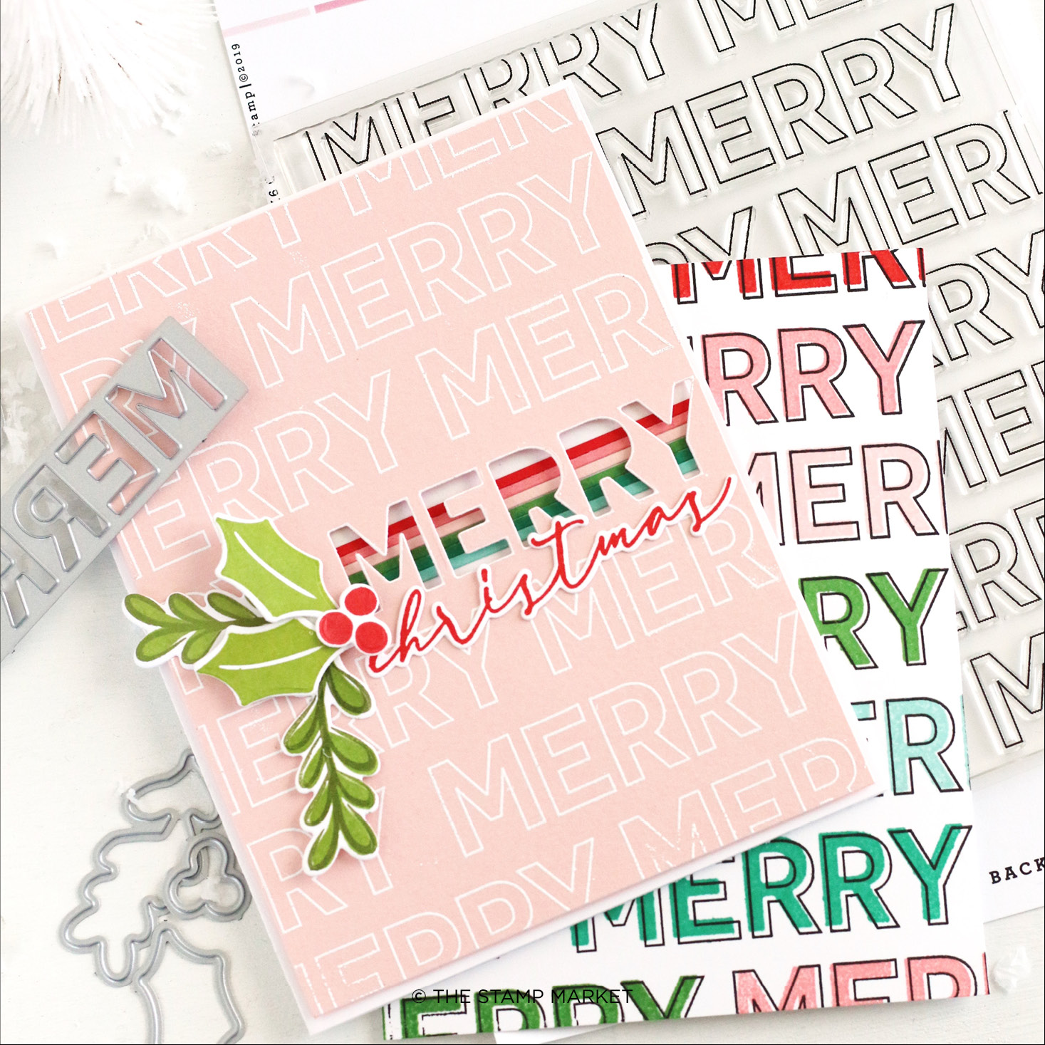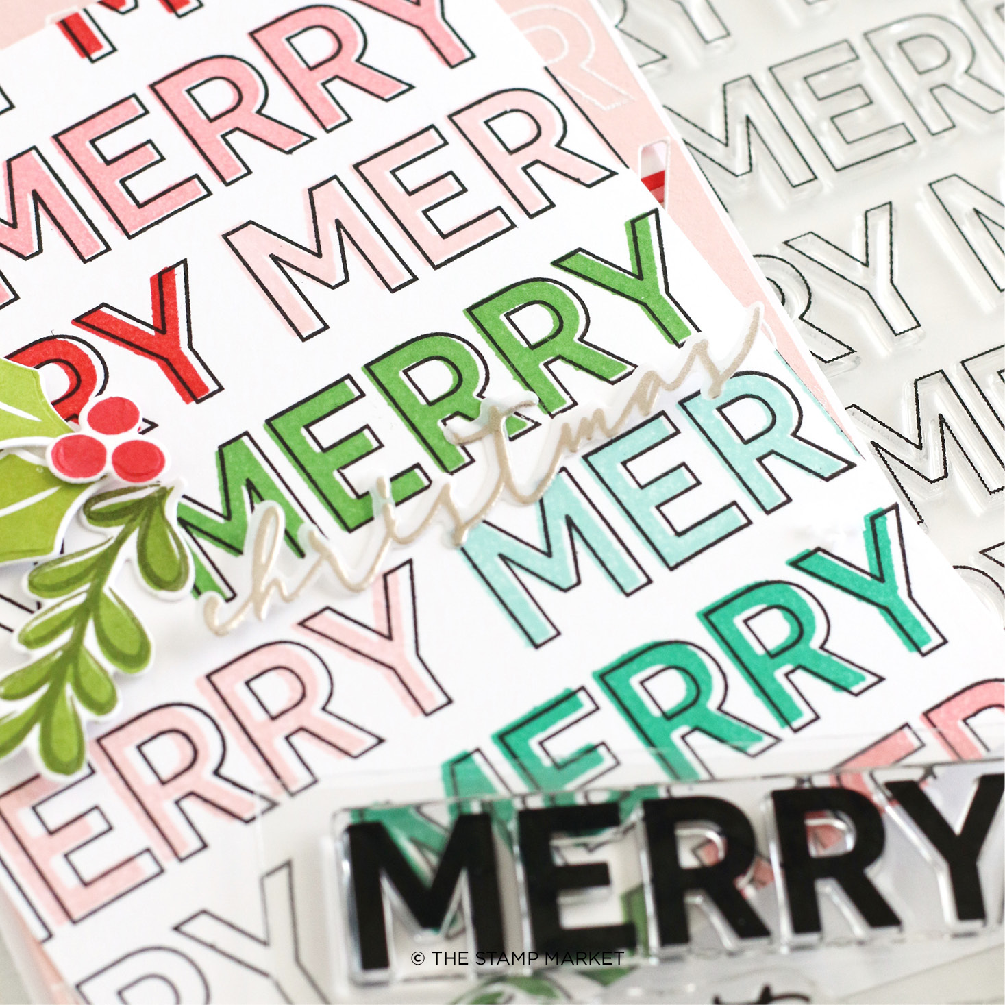 1 5x6 Background Stamp. Create festive Merry backgrounds for your cardmaking this holiday season.