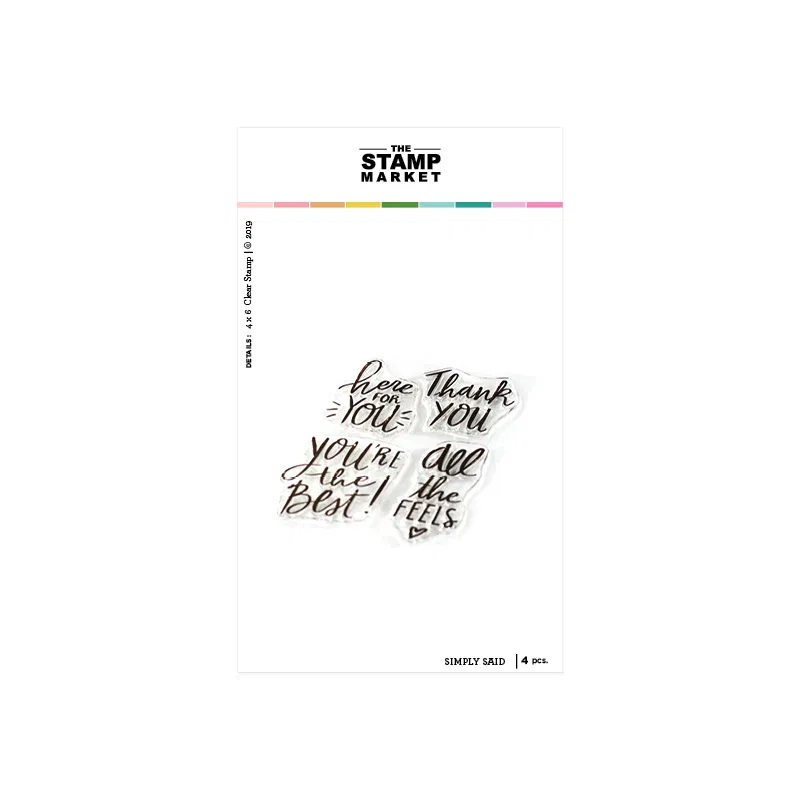 1 4x6 Stamp Set with 4 Images. 4 Larger Hand scripted greetings that are the perfect staple for your greeting collection.